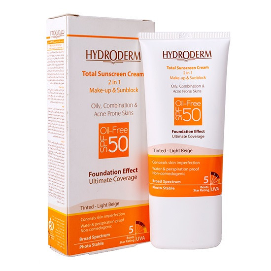 ضد آفتاب کرم پودری فاقد چربی 2 در 1 SPF50 رنگی ( بژ روشن ) هیدرودرم – Hydroderm